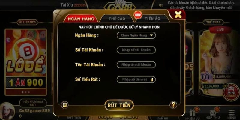 Hệ thống rút tiền của Go88 hỗ trợ nhiều kênh khác nhau giúp người chơi chọn phương thức phù hợp với nhu cầu và thói quen giao dịch của mình.