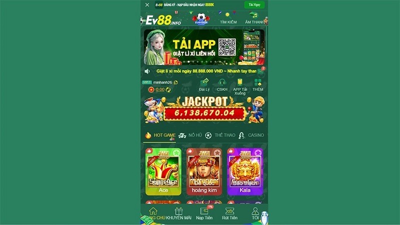 Không cần mở trình duyệt, người chơi chỉ cần một lần chạm là có thể tham gia ngay. App EV88 hoạt động ổn định, cho phép bạn đặt cược, quay hũ hay bắn cá mọi lúc, dù đang ở nhà hay di chuyển. Sự tiện lợi này chính là ưu điểm lớn nhất của ứng dụng.